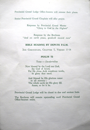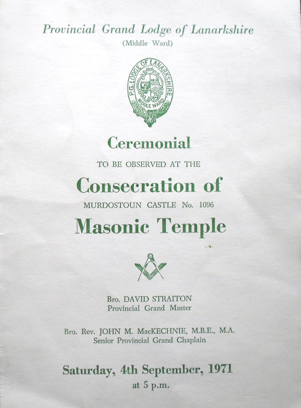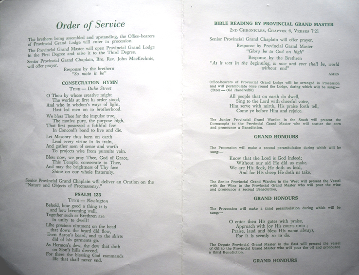 This next three images are of the programme for the Ceremony of Consecration of our current Temple. Another great item of memorabilia for display thanks to Bro John Strachan P.M.