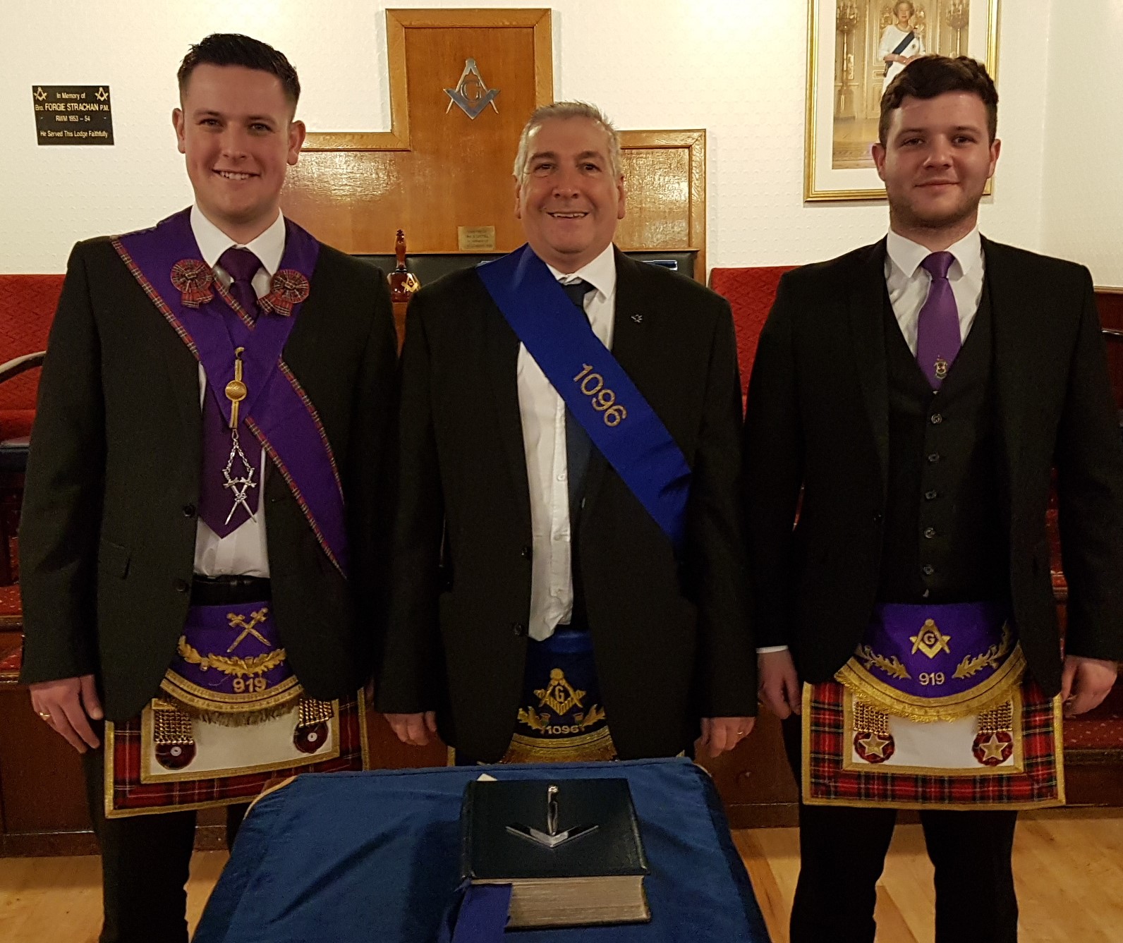 At the completion of the degree, the newly initiated Bro Frank McBride was presented to RWM Bro David Yule who, along with RWM Bro Derek Douglas, congratulated him on his first step in Freemasonry and called on the assembled company to give him a warm welcome into the Lodge.