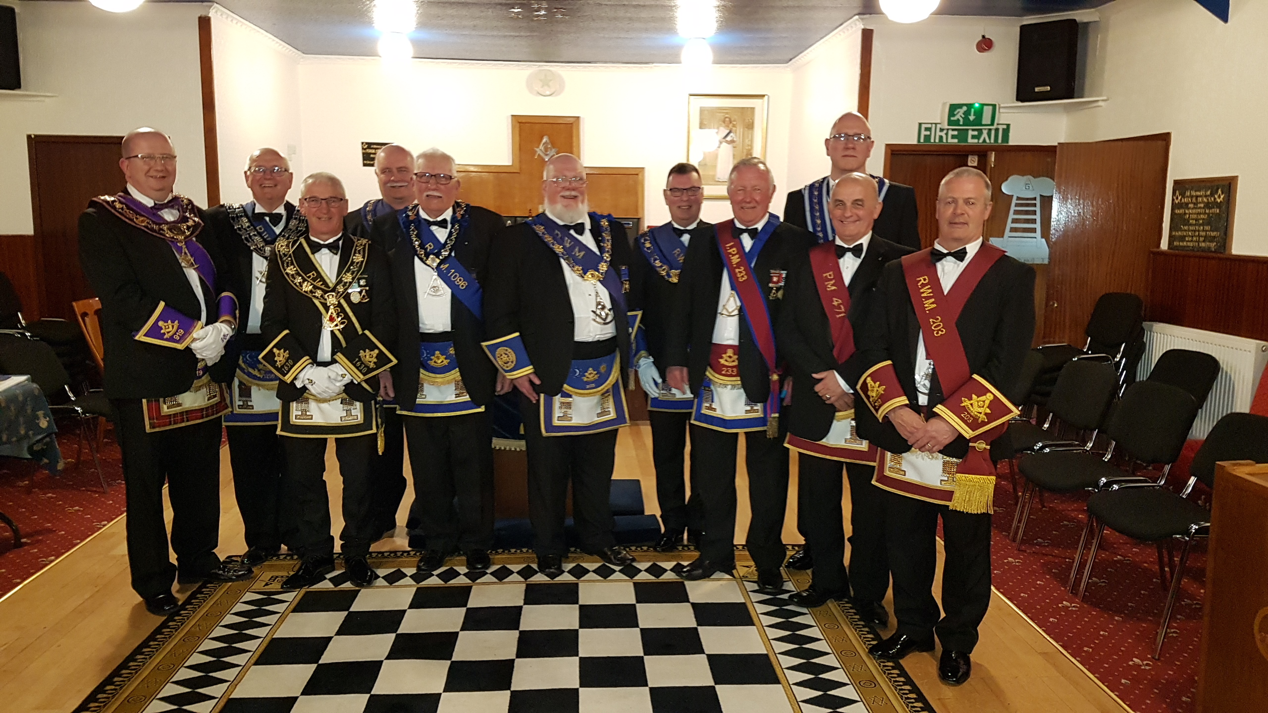 Tuesday 27th: RWM Bro Derek Douglas welcomed all to his last regular meeting. After the usual business, RWM Bro Derek Douglas welcomed a distinguished deputation from The Operative Lodge of Airdrie No.203 headed by their RWM Bro James Paisley. RWM Bro James Paisley assisted by an excellent Mark degree team, proceeded to deliver a most enjoyable Mark degree on one of our own candidates Bro Frank McBride, who was joined in the ceremony by two Brethren from Lodge Robert King Stewart No 919, Bro Dale Gordon and Bro Ciaran Caldwell. The degree was conducted by a well rehearsed Mark degree team who were all excellent and impressed the assembled Brethren. RWM Bro Derek Douglas, on resuming control of the Lodge, congratulated RWM Bro James Paisley, and called on the assembled brethren to congratulate RWM Bro James Paisley and his team on the high standard of the degree. The link between the two Lodges grows stronger with each mutual visitation, and will strengthen as years go by. At the close of the meeting, all retired to harmony for a blether and soft(?) drinks in abundance.